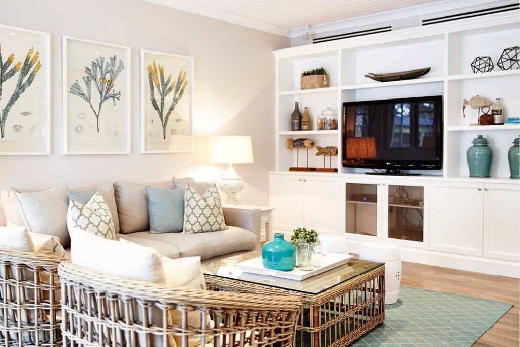 Go Natural – One of the signature points to note with this look is that all of the white acts as a blank canvas. Warm up a modern Hamptons style space by embracing timber floors, wicker furniture, greenery and an abundance of house plants, plus natural textures like linens, jute and rattan to add a personal and homey touch to an otherwise ‘clean’ design.